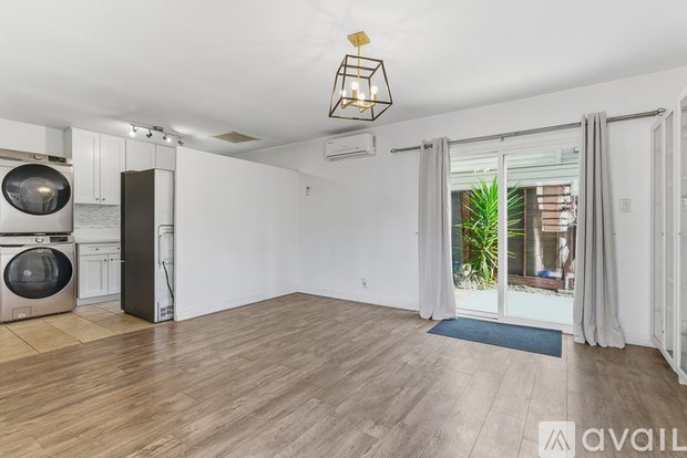 The unit is bright with an excellent layout and many windows with large sliding door to the backyard. It has been thoroughly upgraded with luxury laminate wood flooring, upgraded kitchen, included washer/gas dryer (stacked), SAMSUNG BESPOKE refrigerator, modern quartz kitchen countertops and updated kitchen cabinets and beautiful kitchen backsplash. There are 2 mini split A/C systems (1 in the living room and 1 in the bedroom). The bathroom has been updated with tiled wall bathtub and tiled flooring, smooth ceiling throughout and mirrored closet door.