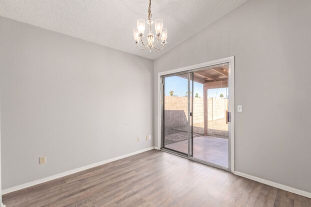 Embrace elegance in the heart of Peoria with this stunning 3-bedroom, 2-bathroom home! Updated luxury vinyl plank flooring flows throughout the entire home seamlessly. Enjoy vaulted ceilings and tons of windows that bring in an abundance of natural light. The kitchen and bathrooms have been refreshed with painted cabinets and updated countertops. Benefit from a two-car garage, no HOA, and easy access to the Loop 101, shopping, and dining hotspots. Golf enthusiasts will love the proximity to Country Meadows Golf Course. Plus, catch games at the University of Phoenix Stadium and explore Westgate Entertainment District, just minutes away.