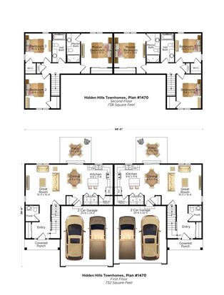 Each Hidden Hills Townhomes residence features a gourmet kitchen with abundant cabinetry, granite countertops, island with built-in snack bar, walk-in pantry, stainless steel appliances and luxury vinyl plank flooring throughout the first floor. Other luxury features include spacious bedrooms with plenty of storage, an in-unit washer and dryer, private two-car garage and full basement.