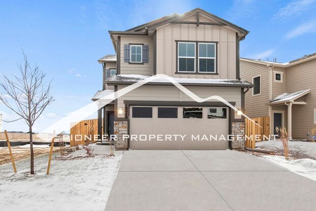 Be the first to call this brand-new, modern home your own! This never-lived-in single-family home features 3 bedrooms, 2.5 bathrooms, and an attached 2-car garage. The open-concept boasts soaring ceilings and sleek LVP flooring throughout the main level. The stylish kitchen with shaker cabinets, stainless steel appliances, solid stone countertops, and plenty of space for meal prep and entertaining. The adjoining living and dining area is flooded with natural light from oversized windows that offer stunning views of open space, mountains and the fully fenced, zero-scaped backyard. Upstairs, you'll find all three bedrooms and conveniently located laundry with washer/dryer included. The primary suite includes a private ensuite bathroom and a spacious closet, while the other two bedrooms share a second full bathroom. Central A/C ensures comfort during warm summer days.