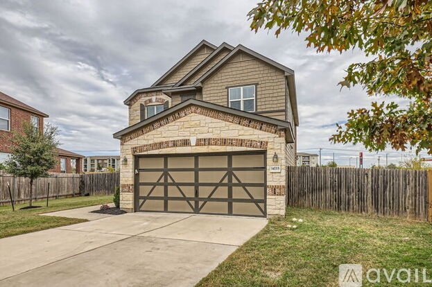 Make your peaceful suburban living dreams come true with this well priced two story beauty in Pflugerville's The Landings at Wells Branch community. Darling suburban neighborhood made up of mostly newer homes with sidewalks, a park, playground and sports court just a short stroll from your front door. This lovely 3BD/2.5 BA home is nestled on a half-moon cul-de-sac on one of the largest lots in the community. Beautiful curb appeal with striking brick and stone masonry and a carriage style door on the two-car garage. The bright and spacious interior comes move-in-ready with desirable contemporary finishes, recessed lighting, and soft neutral colors. Easily entertain and stay connected with this open floor plan living room, dining area, and kitchen. Gorgeous contemporary kitchen with desirable granite countertops, SS appliances including a French door fridge, white cabinetry, tile backsplash, and a peninsula with inviting bar seating that everyone will want to gather around. The home chef will love all the counter space and pantry! Upstairs you will find three bedrooms including a huge primary suite with double doors and its own ensuite bathroom complete with a dual quartz topped vanity, large walk-in shower, and sizable walk-in closet. Convenient second floor laundry room plus a main floor half bathroom near the entry foyer. This home comes complete with a covered back porch perfect for outdoor living plus excellent yard space to play and grow. Tall privacy fencing and no back neighbors are a major bonus. Prime location with easy access to Wells Branch Pkwy and I-35 and just 3 miles to historic Downtown Pflugerville, 7 miles to The Domain & North Austin Tech Corridor, and 13 miles to Downtown Austin. Don't miss out on the opportunity to swoop up a home of this caliber and locale at this price point, come take a tour today!