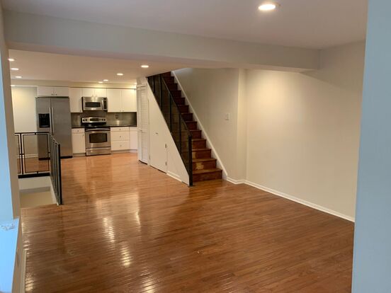 Fitler Square 2 Bed w/Outdoor Space - Spacious 2 bedroom, 1.5 bath apartment ideally located in the charming Fitler Square neighborhood. Enter this unit to hardwood floors spanning the entire first floor which contains the living, dining, and kitchen areas. Large living room with original marble mantel and built-in shelving. Kitchen has all full sized stainless steel appliances, white shaker cabinetry and granite counters. Just off the kitchen is a private rear patio perfect for entertaining. The 1st floor also contains a 1/2 bath and laundry. The lower level has 2 equally sized bedrooms, plentiful closet space, and a full bath complete with double marble vanity and white subway tiled bath.
