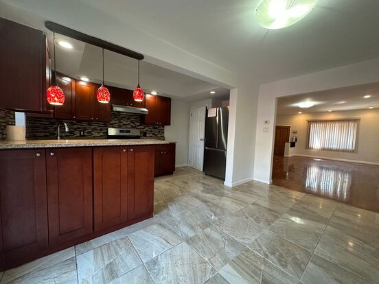 Enter the home into the open floor-plan living dining room with engineered wood flooring. The living room features a bright bay window and the dining room has a sliding door that will take you to the oversized rear deck that is perfect for warm weather entertaining. On the second floor you will find a generous sized master bedroom with slider to Juliet balcony and the 2 other bedroom and full bath complete this level. The house has a finished basement with laundry.