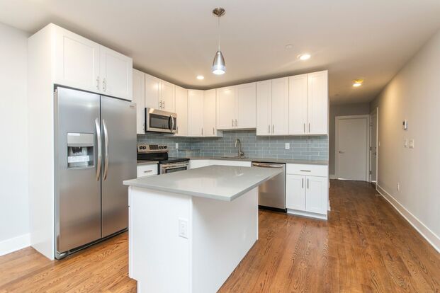 3 bed/3.5 bath with Private Roof Deck | Francisville - Welcome to this impressive bi-level 3-bedroom, 3.5-bathroom residence situated in the heart of Francisville. Upon entering, you'll be greeted by meticulously crafted hardwood floors, stained onsite, that extend throughout the entire space, accompanied by expansive windows bathing the unit in natural light. Step into the spacious living area and kitchen, boasting quartz countertops, white cabinets, and stainless steel appliances. On this level, you'll also discover one bedroom and one and a half bathrooms. Head upstairs to find two additional bedrooms showcasing large closets and two full bathrooms, along with a dedicated laundry room. But don't stop there, grab your favorite beverage and venture up to your private roof deck, offering breathtaking views of the city. $75 monthly water fee will cover all cold water usage. First, last, and security deposit required to move-in. Conveniently situated near public transportation, this residence is nestled in the vibrant Francisville neighborhood. Mere blocks away from the culinary delights of Fairmount Ave, a short bus ride connects you to the heart of Center City. Additionally, you'll find yourself minutes from the scenic Schuylkill River Trail and the charming Francisville Playground. Your daily necessities are easily accessible with Aldi, Bold Coffee Bar, and Tela's Market and Kitchen just a short walk away. Photos of a similar property by the same builder.
