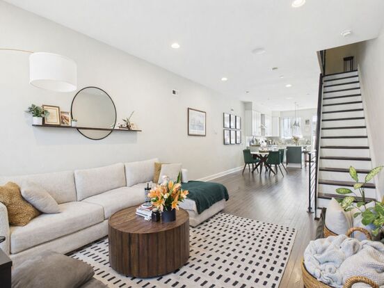 Enjoy multiple outdoor spaces including a private backyard patio and a massive rooftop deck with stunning skyline views, perfect for relaxing or entertaining. Additional features include in-unit laundry, modern designer bathrooms, and abundant natural light.