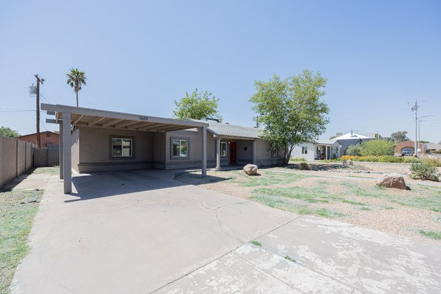 Beautiful 3/2 Phoenix House! This updated Phoenix house features custom paint, all-tile and wood plank-style flooring, and a spacious kitchen with stainless steel appliances and breakfast bar - perfect for entertaining. The expansive living room flows seamlessly to cozy backyard views. Enjoy a huge split master suite with enclosed bath, oversized bedrooms with updated baths, and stacked washer/dryer with extra storage. Carport parking, an oversized backyard with mature landscaping and mountain views, plus proximity to schools and a great location make this home a must-see!