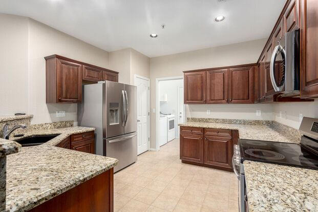 This 3 bed, 2.5 bath townhome in the gated community of Hunter Ridge has great mountain views and 2 car garage. Open kitchen features plenty of cabinet space and all new stainless steel appliances. Primary bedroom has a large walk in closet, and bathroom with dual sinks. This unit also has a private fenced in yard. This wonderful gated community offers a refreshing pool and spa and is conveniently located near restaurants, a golf club, and freeways.