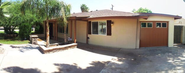 Located in the Arcadia District. Remodeled, Open floor plan w/split bedrooms. Bamboo and slate flooring and carpet in bedrooms. Granite counter tops w/stainless steel appliances, Travertine master bath w/jetted tub, large shower and huge walk-in closet, crown molding. Large backyard w/patio. Single car garage. Front porch & large grass backyard with irrigation. Dual pane windows, block construction for energy efficiency. Washer/dryer/refrigerator included. Electric Heat. SRP, SW Gas, City Water. Located near Arcadia amenities, Fashion Square Mall & The Biltmore. $40 application fee per adult. No past evictions or rental collections allowed. Proof of income should show earnings of 2.5 times the rent. $2750 rent plus 2% tenant admin fee ($55) = $2805 total rent. $2850 security deposit. $300 pet deposit if small dog is accepted. No cats. No Smoking on property.