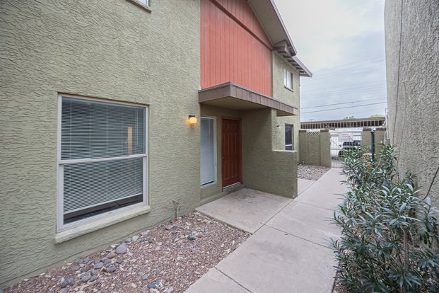 Modern 2/1.5 Phoenix Townhouse! This split-level townhouse offers modern comfort with all tile and wood-plank style flooring throughout. The updated kitchen with cozy eating nook flows into a bright living space, perfect for entertaining. Upstairs, both bedrooms feature large walk-in closets, providing ample storage. Enjoy the privacy of a premium corner unit with enclosed patio, ideal for relaxing outdoors. The community offers tranquil walking paths and off-street parking. With nearby schools, shopping, and dining, plus a prime Phoenix location, this home blends convenience, style, and everyday comfort.