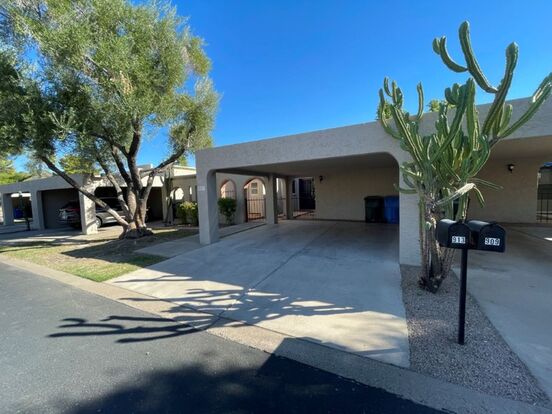This 2 bedroom, 2 bath patio home is available in Villa Sierra Madre! It offers a 2 car carport and a front and side entry. The living room/dining is open with wood and stone tile flooring. The galley kitchen has all stainless steel appliances and granite countertops. The primary bedroom has a walk-in closet, and access to the back patio. The private back yard has a covered patio with terra-cotta tile and an attached storage room. The Community Pool is steps away! This property is close to parks, restaurants and shopping!