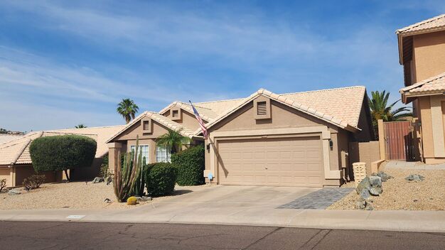Welcome to your new home in the Foothills of Phoenix, AZ! This stunning 3 bedroom, 2 bathroom house boasts vaulted ceilings, stainless appliances, granite counters, and beautiful wood look tile floors with neutral carpet. The primary suite features a luxurious 5 piece bath and a walk-in closet. Enjoy breathtaking mountain views from the spacious great room and outdoor sitting area. Relax by the play pool or unwind under the covered patio. With dual light blinds, ceiling fans and a washer and dryer included, this home has everything you need for comfortable living. Don't miss out on this amazing opportunity to live in a beautiful house in a desirable location! Landscape and pool service included!