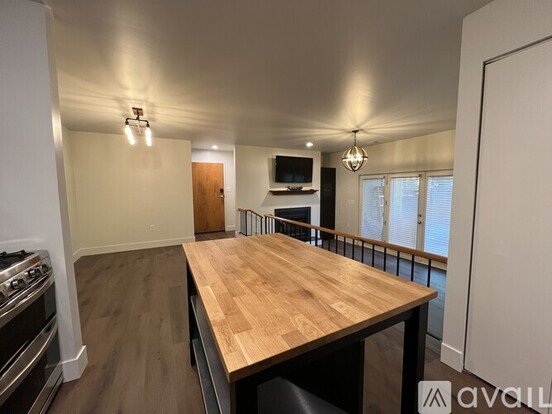 Large kitchen island with ample storage and a butcher block workspace perfect for culinary enthusiasts.