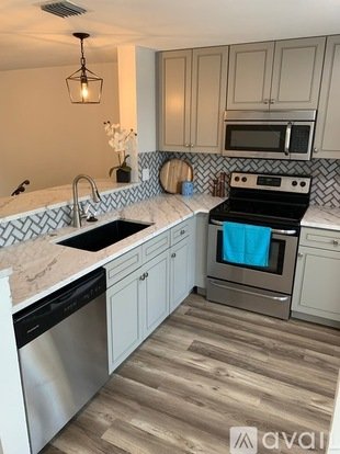 Beautiful 2 bedroom, 1.5 bath townhouse available April 30. New roof, hurricane windows and doors make it very safe and quiet all of the time. All copper plumbing so you won't get any polybutylene pipe leaks! Completely remodeled with high end finishes! Open floor plan, contemporary shaker cabinets, stainless appliances and glass tile backsplash. Each bedroom has its own bath vanity with undermount sinks and white quartz counters! There are 3 sinks, 2 toilets, one tub/shower combo. Lots of closets! Amenities include in-unit washer/dryer, central AC, central heat, dishwasher, disposal, microwave, close to pool, plank flooring - no carpet, 2 parking passes, window treatments throughout. Relax on the spacious gated patio directly in front of the fountain and lake. Pets allowed upon Landlord approval. Great location - Close to 95, the beach, brand new TopGolf. Walk to Publix, Old Towne restaurants, shopping - this area is booming with big expansion plans! Available APRIL 30. $2,450/month rent, water/sewer/trash included. Move-in with First, last month and Sec Deposit. Realtors welcome, bring your clients, you will be compensated.