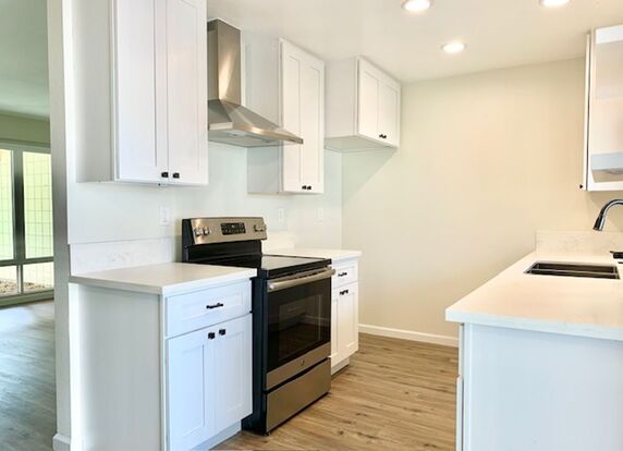 Step inside to discover a bright, open-concept floor plan with brand-new tile and flooring throughout. The kitchen is fully updated with custom cabinetry and deluxe new appliances, perfect for both everyday living and entertaining. The spacious living area opens to a lovely covered front patio, ideal for relaxing mornings or evening chats.