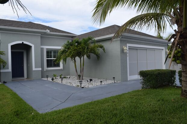 Welcome to the Gorgeous 4 Bedroom home, a stunning property located in the vibrant city of Port St. Lucie, FL. This home boasts four spacious bedrooms and three full bathrooms, offering ample space for comfort and relaxation. The interior features a blend of tile and wood flooring, adding a touch of elegance and warmth to the living spaces. The screened porch is perfect for enjoying the Florida weather, while the corner lot provides additional privacy. The home is equipped with ceiling fans, an alarm system, and CCTV for added security and peace of mind. The oversized driveway and garage offer plenty of room for parking and storage. The exterior of the home is just as impressive, with accordion hurricane shutters for added protection, lush landscaping for a serene environment, and fruit trees for a touch of nature's bounty. The garage is also screened, providing a versatile space for various uses. This home is a perfect blend of style, comfort, and security.