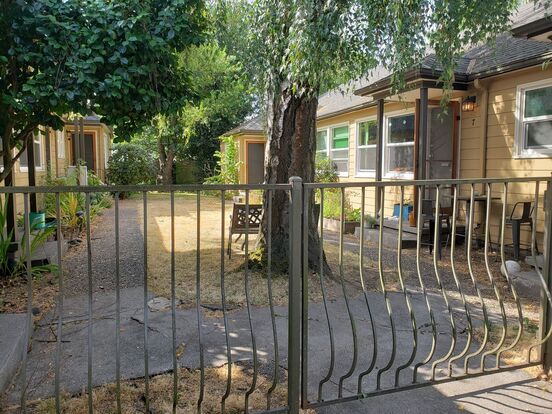 Charming Courtyard 1 Bedroom Apartment - Courtyard apartment close-in NE Portland. 1 bed/1 bath 600 sq ft. No Security Deposits! Secluded end apartment unit with newer siding, newer windows, wood floors and built-in cupboards throughout. New marble kitchen counters! Spacious kitchen with electric range and fridge. Bathroom with tub shower combo and tiled floors. Refinished bathtub! Electric radiant heat. Shared on site coin operated laundry. Private storage unit provided. This apartment is effortlessly located between the popular Alberta Arts and Mississippi neighborhoods.