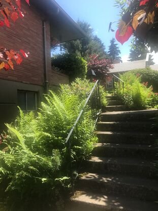 Tabor Place features a courtyard setting with the apartments sitting high above the street level. It is built in the midst of an area more residential than most of Burnside which makes it surprisingly quiet and charming; yet there is still the extreme convenience of being on one of the most prominent avenues in Portland. The tiered garden in the middle of the courtyard creates a private oasis for the 6 apartments that surround it. And the garden style entries evoke a very residential feel.