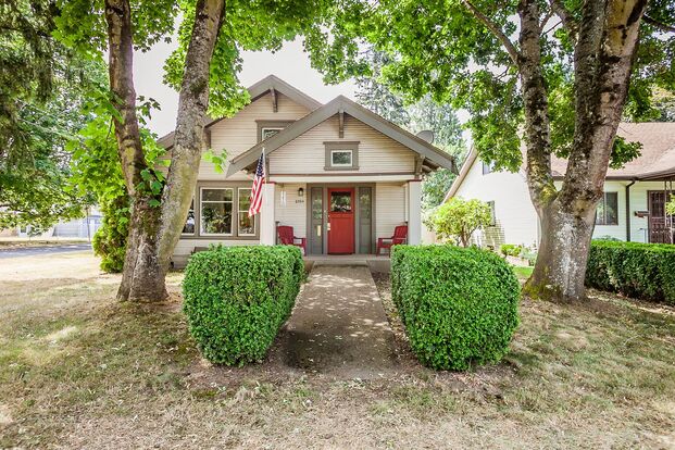 Quaint 1912 bungalow in Montavilla. 3 bedrooms, 1 bath. Tons of charm and character with updated kitchen and bath. Wood floors, new paint, forced air gas heat, insulated windows and more! Great outdoor living spaces on corner lot. Close to Mall 205, Gateway, Warner Pacific U and I-205