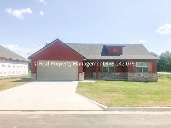 This 2022 home features 3 bedrooms and 2 bathrooms, split floor plan. The spacious kitchen and dining area are open to the living room which is great for entertaining or family time. All kitchen appliances included. Lots of storage and closet space. Washer and Dryer hook-up. This home also features a 2 car garage, back patio and large privacy fenced back yard. Located in Pocola, OK just minutes from Fort Smith. Tenant pays water/electric/gas and is responsible for all landscaping/lawn care. Pets allowed (2 pet limit. Some dog breeds are restricted) NO HUD.