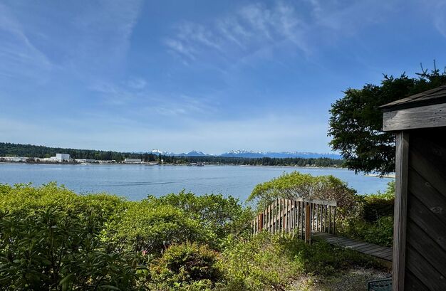 Introducing this gorgeous waterfront condo with breathtaking views from every West facing window. This fully remodeled 2 bedroom, 2.5 bathroom condo is new from the studs out. It features a main floor primary bedroom with a private deck and luxurious en-suite bath, gourmet kitchen with Sub Zero and Wolf appliances, and an open lower level with a built-in Murphy bed for versatile use. Enjoy the beach lifestyle with shared waterfront access and stairs to Liberty Bay just outside to your private patio and path to the beach, kayak storage or gather with friends at the gazebo with a firepit. Take advantage of the community amenities including tennis and pickle ball courts. Don't miss out on this exceptional opportunity to live a worry-free waterfront lifestyle.