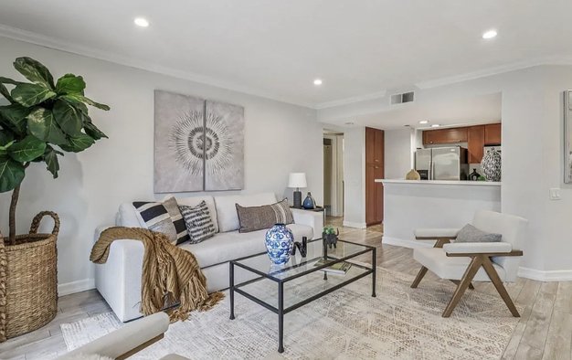 Beautifully updated and move-in ready, this lower-level 1-bedroom condo in the desirable Villa Taviana community offers style and convenience. The bright, open floor plan features a spacious living room with crown molding and an adjoining patio for seamless indoor-outdoor living. The kitchen, complete with breakfast bar, stone counters, stainless appliances, and ample cabinetry, flows into the dining and living areasperfect for entertaining. The king-sized bedroom includes a walk-in closet with custom barn doors, while in-unit laundry and a large storage closet add practicality. New AC! Villa Taviana provides resort-style amenities including two pools and spas, a fitness center, tennis courts, clubhouse, playground, BBQ areas, and EV charging stations. Located within the acclaimed Poway Unified School District, with Turtleback Elementary nearby, plus easy access to shopping, recreation, and freeways, this home is the perfect blend of comfort, convenience, and community.