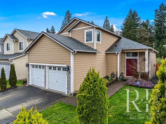 Set on a quiet cul-de-sac near JBLM, this 3-bedroom, 2.5-bath home offers a calming blend of space, function, and connection to nature. Step through the double-door entry into an airy living room with vaulted ceilings and plush carpet underfoot. The gas fireplace brings a cozy note to the open-plan main floor, while an oversized sliding glass door floods the space with natural light and invites you out to the brand-new covered deck—perfect for year-round lounging or enjoying morning coffee with views of the greenbelt just beyond the fence.