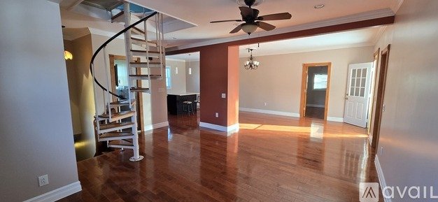 This unique home features a large private outdoor deck, perfect for relaxing or entertaining, along with a spiral staircase leading to a spacious attic spanning the second and third floors—ideal for storage, a home office, or additional flex space.