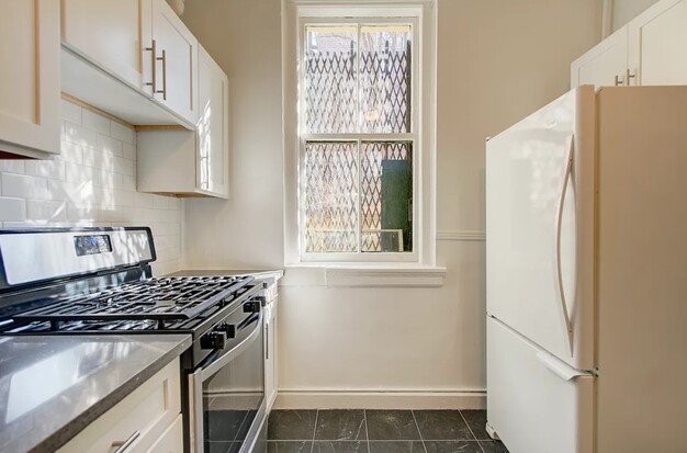Step into a bright, spacious home where classic charm meets modern comfort. The sun-filled living room flows seamlessly into an eat-in kitchen, featuring brand-new white shaker cabinets, sleek black granite countertops, full-size appliances, and a large window overlooking peaceful garden views. Down the hall, youll find two generously sized bedrooms and a newly renovated, contemporary bathroom. Prewar details shine throughouthigh ceilings, exposed brick, elegant moldings, plaster walls, and oak hardwood floorsadding warmth and character to every room.