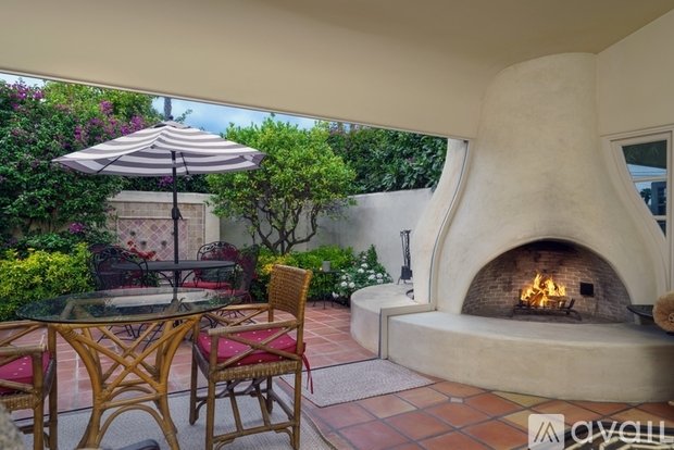 Rancho Santa Fe Village Charmer. Rare opportunity to live in this Lilian Rice "Lily Award" winning design by Wallace Cunningham. This single level Spanish Colonial Casita consists of one spacious Bedroom, two elegant Bathrooms, an open Chef's Kitchen and a Living Room that completely opens up to a private Patio for ultimate indoor / outdoor living. Quiet village location provides relaxation, enjoyable walks to fine dining, cafes, shops, library, banking and walking trails. For those looking for quality and sophistication as well as the simplicity of just "bring your suitcase." FULLY FUNISHED and all utilities included.