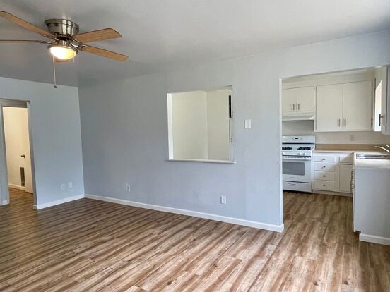 Welcome to this charming single level duplex in Redding, CA! This cozy home features 2 bedrooms, 1.5 bathrooms, and plenty of storage space throughout. The luxury vinyl plank flooring and two tone paint give the interior a modern and stylish feel. Enjoy the convenience of a covered carport and being near shopping and restaurants. Stay warm and cozy during the winter months with the gas fireplace. The fenced front and back yards provide privacy and space for outdoor activities. Additional amenities include ceiling fan(s), mini-split HVAC, and washer hookups. Don't miss out on this fantastic opportunity to call this lovely duplex your new home!