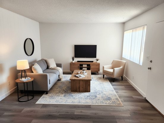 • Bright, spacious living room with large windows