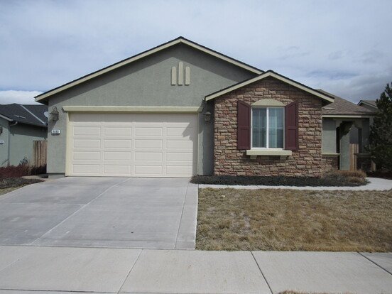 3 Bedrooms, 2 Bathrooms, 2 Car Garage. Rent $2,400, Deposit $2,390. 1,528 sq. ft. Includes fridge, W/D hook-ups, D/W, gas range, A/C, microwave and double pane windows. Two pets upon approval with an additional deposit of $500 per pet. This is a highly upgraded single story home that is immaculate and shows like new (built in 2008) in a beautiful new subdivision in Lemmon Valley that is just a few minutes from Sparks and Reno. The stucco and stone exterior make for exceptional curb appeal for this home that is located on a quiet cul-de-sac with other well-maintained stucco homes. The floor plan is very open with the great room and the kitchen merging as one. You will love the gourmet kitchen with granite counter tops and back splash, solid cherry-wood cabinets, a tile floor, breakfast bar, breakfast nook, pantry and gas burners. The master bedroom is large and the master bathroom features a separate tub with granite back splash, a separate glassed-in shower with granite walls, raised dual vanities with granite counter tops and a tile floor. Tile floors are also in the hall bath and utility room. Out back you will find a large backyard, a large paver stone patio with a paver stone walkway down one side of the house and a feeling of openness plus mountain views that can all be enjoyed in the afternoon shade as the home faces west. Landscaping is tenant responsibility. Tenant pays G, E. W, T & S. 1 year lease.