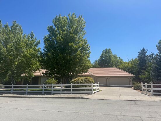 Outdoors, you’ll be surrounded by many mature trees, manicured landscaping (with landscaping services included), and stunning mountain views from the front yard — where you might even spot a few wild horses wandering by. The backyard includes storage sheds, and there’s plenty of space for gardening or enjoying the shade. Pets accepted on approval.