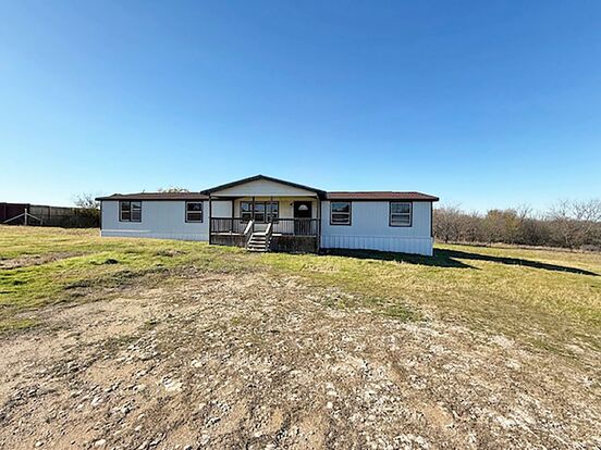 Beautiful 4 Bedroom 2 Bath manufactured home in Rhome Texas on 2 acres. This home boasts a huge kitchen and nook area, Formal Living & Dining Rooms, Large Family Room with a wood burning Fireplace, Full Sized Utility Room with Elec. Washer/Dryer hookups. Storage Barn for your yard tools and mower. This home has a nice covered front deck for relaxing and enjoying the outdoors. Septic System.