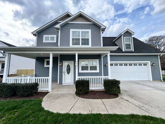This home offers a wide private drive as well as an attached garage. Making your way up to the front door off of your covered front patio you will enter into your foyer and staircase. A few feet forward you enter to the enormous high ceiling open concept living area. The eat-in kitchen offers upgraded countertops as well as stainless steel appliances. The open concept kitchen leads in to the main living area where you can look out the oversized sliding glass doors that flood the room with natural light. Moving back down the hall you have your mud room, half bath, garage access and full laundry area with washer and dryer to convey with lease.