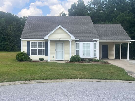 Lovely 2 Bed / 2 Bath home that is nestled in Westry Crossing near Hwy 64 and 95! The home is located in a cul-de-sac and features a GARDEN TUB in the primary bathroom, LARGE BEDROOM CLOSETS, GAS LOGS, LVP FLOORING THROUGHOUT, a pull-down attic and a CARPORT with ATTACHED STORAGE AS WELL! The backyard is SPACIOUS AND PEACEFUL.