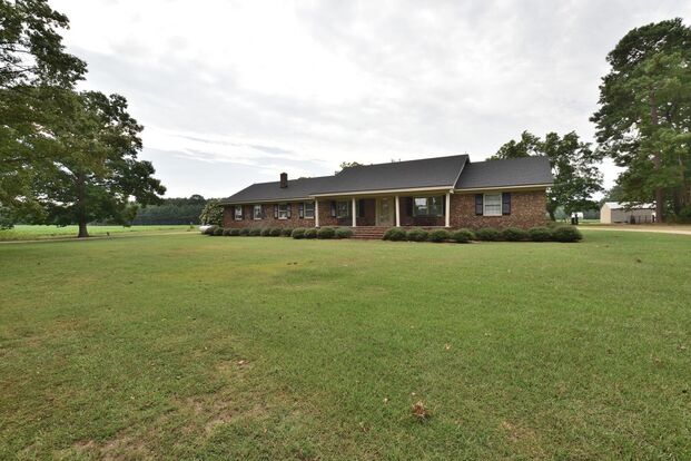 Great 4 bedroom, 3 bath home just outside the City! This brick ranch sits on about an acre of land and has an attached two car enclosed carport. Circle driveway, formal living room and den and formal dining room.