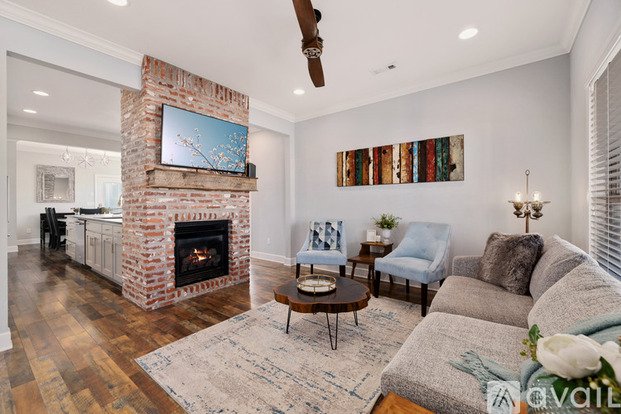 Available April 15: Enjoy Downtown Rogers with the comfort of a quaint yet modern 2 story home! Walking distance to downtown (0.4 mi), the Railyard (0.4 mi), the Railyard bike park (0.6 mi), and some of the best restaurants NWA has to offer (THE RAIL). Ride your bike to the Onyx headquarters (0.6 mi) or lake Atalanta (1.3 mi), or drive just 10 minutes to Prairie Creek Marina. With 3 bedrooms, a fully stocked kitchen, beautiful front patio, fenced in backyard, and locked bike storage in carport, you'll love it here! This home features a beautiful floor to ceiling brick fireplace that separates the kitchen and living area. On the first floor, you'll enjoy entertaining and gathering space that's beautifully designed and comfortable. On the top floor, there are 3 bedrooms and 2 full bathrooms along with a laundry room. The master bedroom has an attached bathroom with a walk-in subway tile shower, and the other 2 bedrooms share a patio that's great for a good book and cup of coffee. This rate is for a 12 month lease.