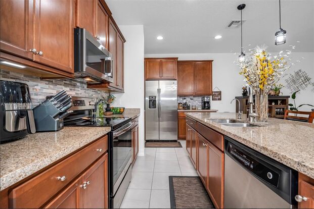Beautiful town house, truly exceptional!!!! 3 Bed, 2.5, 2 car garage and high ceilings, gourmet kitchen with an island, quartz counters, stainless steel appliances, wood cabinets and pantry. The master bedroom offers an ample bathroom and walk-in closet.The patio include place perfect for share with family and friends. With 2,222 sqft of living space and community amenities like a Pool, Clubhouse, Gym, Park, and walking trails.