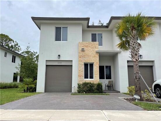 Beautiful corner townhome with a private walkway in a prime location! This 3-bedroom, 2.5-bath townhouse, built in 2019, is move-in ready and filled with natural light, featuring high ceilings and doors for a spacious feel. The first floor boasts beautiful porcelain tile, while the second floor and stairs are upgraded with state-of-the-art laminate flooring. Relax in the serene screened patio or step out onto the private balcony off the spacious primary bedroom, which also includes two walk-in closets and a lovely tree view. The gated community offers great amenities, including two pools, a pier, a playground, and a cabana. Located close to major roads, shopping, and just a couple of miles from Wellington Green Mall, this home is also zoned for excellent schools.
