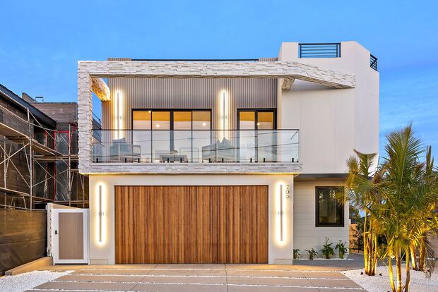 This dazzling, newly built home combines modern design with coastal charm, offering luxury living in the highly sought after Southwest neighborhood, just minutes from San Clemente’s best beaches. The striking architecture features stone and wood accents, complemented by a beautifully landscaped yard. Inside, you'll find engineered hardwood floors, nine-foot ceilings with LED lighting, and sleek finishes like white oak doors and black-framed Andersen windows. The open-concept living and dining area boasts a glass-framed wine wall, large picture windows, and La Cantina bi-fold doors that open to the outdoor space. The gourmet kitchen includes a 12-foot waterfall island, custom cabinetry, Thermador appliances, and a built-in Gaggenau refrigerator and wine fridge. The main level also features a powder room and a bedroom with an ensuite bathroom. Outside, the backyard is an entertainer's dream with a California room, recessed lighting, a Resysta deck, bar seating, and an outdoor kitchen complete with a Hestan grill. The private primary suite offers ocean views from its balcony, a spacious walk-in closet, and a luxurious bathroom with a soaking tub and walk-in shower. An open loft, two more ensuite bedrooms with private balconies, and a massive rooftop deck with panoramic ocean and hill views complete the home. Additional amenities include an owned solar system, whole-house surround sound, and a laundry room with storage. Walk, ride a bike, or take a golf cart to local favorite beaches or to surf world renowned Trestles. Head to downtown Avenida Del Mar to dine and shop without every getting on the freeway. Don't miss your chance to live the dream in luxury!