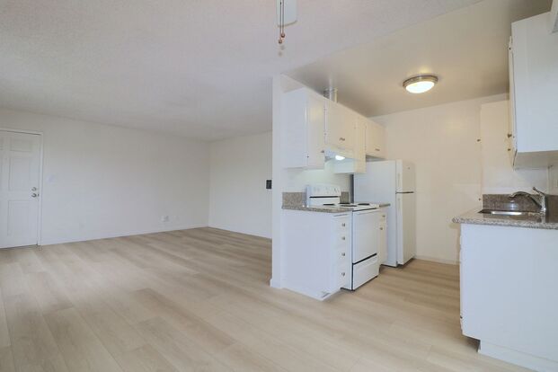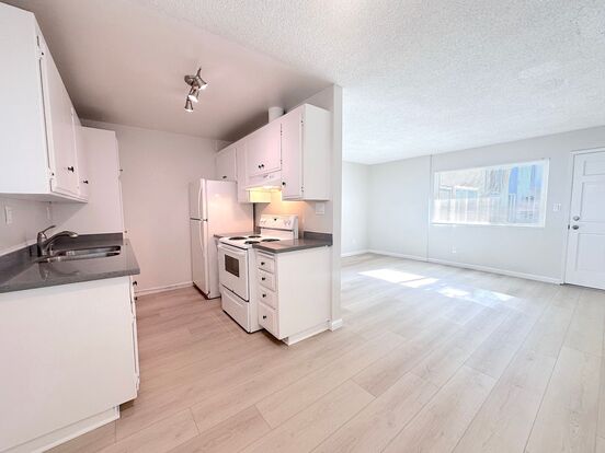Beautiful 1b/1b 1st floor apartment in the heart of Pacific Beach! Walk to shops, restaurants, and Crown Point bay! Off street parking/ laundry on site! - Don't miss out on this spacious 1st floor 1b/ 1b apartment apartment in Pacific Beach/ Crown Point! Kitchen includes electric stove, refrigerator and dishwasher. Light colored quartz countertops! Light colored laminate flooring in dining and living room. Carpet in bedroom. Lots of closet space in bedroom as well as in hallway! One assigned parking spot. Coin operated on-site laundry. Water/sewer/trash paid by owner.