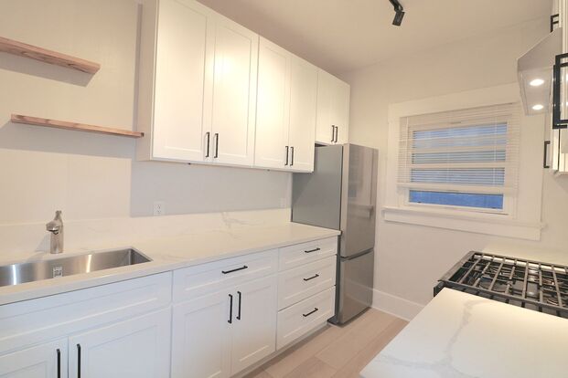 Contemporary kitchen! WATER VIEWS! Studio apt in Bankers Hill. Walk to Little Italy/ Balboa Park! - 3rd floor studio in the heart of Bankers Hill! Gorgeous water views of Coronado bay, Point Loma and parts of downtown San Diego! This is a must see unit! Contemporary kitchen cabinets and light colored quarts countertops. Gas stove and refrigerator included. Large single stainless steel undermount sink with contemporary pull out handle faucet. Ceiling fan in living room. Bathroom includes contemporary bath vanity with towel bars. Vintage style claw foot bathtub. Large windows throughout unit that include double pane windows to help reduce exterior noise. Walk to all the shops and restaurants in Bankers Hill, Little Italy, and downtown San Diego! Only 2 blocks away from Balboa Park!