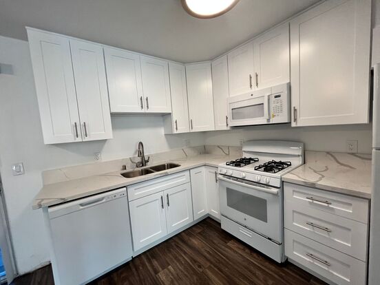 upgraded kitchen with new cabinets and countertops