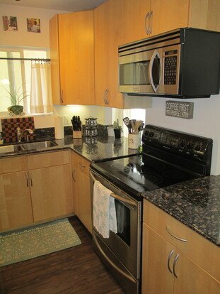 2nd story, 1 bedroom, 1 bath condo in small gated complex of Villagio in North Park. Perfect North Park location with convenient walking distance to both University and Adams Avenues restaurants, coffee shops and breweries! This centrally located, upgraded end unit features crown molding throughout, laminate flooring in all rooms except bathroom which is tiled. Kitchen features stainless steel appliances, granite counters, maple cabinets, under cabinet lighting with track lighting above. There is an additional dining area off of kitchen as well. Main living area is separated from the bedroom, bathroom and laundry closet by glass paneled pocket door allowing for more privacy. Bright master bedroom includes extra large wall closet. Bathroom features single vanity with linen cabinets and additional storage space. Separate room for tub/shower combo and toilet. Unit has A/C, ceiling fans in master bedroom and living room, electric heating and dual pane windows throughout. Fridge, dishwasher, microwave, washer and dryer included. This gated complex also provides a quaint courtyard area complete with covered patio table. One dedicated parking spot is included. Rent includes water, sewer and trash. Small dog under 25lbs will be considered.