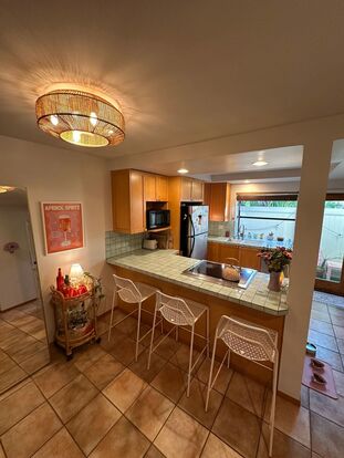 - Bar counter in kitchen, ideal for casual dining or entertaining