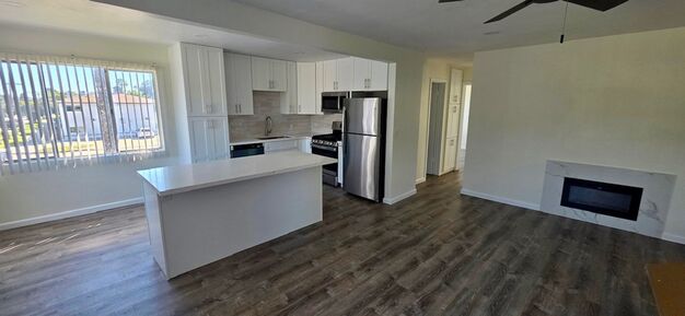 Available Now! This fully-remodeled upstairs 2 bedroom/1 bathroom unit gets a lot of sunlight. All new flooring, appliances, fresh paint, electric fireplace. Includes microwave and dishwasher. Parking on alley is first-come first-served. Four blocks from the ocean. Laundry facility in the building. Pets negotiable with owners approval. Tenant pays SDGE and $75/month total for water/sewer/trash.