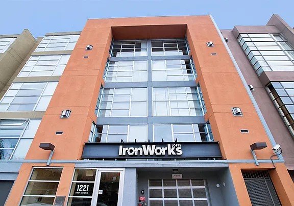 Spacious and contemporary 1 bedroom plus den, 2 bathroom loft condominium located at the Iconic Ironworks building. Flooded with natural light and featuring oversized double height windows and gorgeous refinished wood floors. The entry with large closet leads to the living/dining/great room with handsome gas fireplace and soaring ceilings, remodeled chef's kitchen with new stainless refrigerator, microwave and gas range, new quartz counters, custom cabinets and dishwasher. Large alcove office/guest space and full updated bathroom with new modern vanity and shower over soaking tub on the main level. The large mezzanine bedroom has a walk-in closet and room for a sitting area. The primary bath has a new custom vanity and large walk-in shower. In unit washer/dryer. One car parking and roof deck with downtown views in a boutique elevator building. Ideal SOMA location close to Columbia Square park, Yerba Buena Gardens, Whole Foods, CalTrain and MUNI