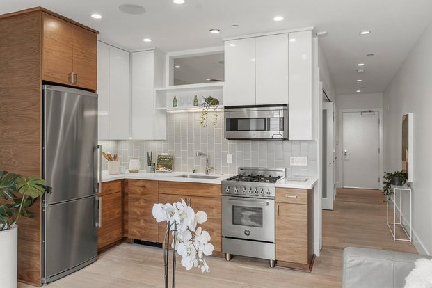 Modern 1-bedroom condo featuring wide-plank wood floors, gas fireplace, built-in speakers, recessed lighting, and designer finishes. Sleek kitchen with quartz countertops, custom cabinetry, Grohe fixtures, and stainless steel appliances (Bertazzoni gas range, Bosch dishwasher, Summit refrigerator).Enjoy a furnished shared roof deck with panoramic city and Bernal Hill views. Amenities include security intercom, Google Fiber WebPass availability, bike parking, and smoked glass doors to the sleeping alcove.Prime location near Valencia Street dining, shops, nightlife, and convenient transit/freeway access.