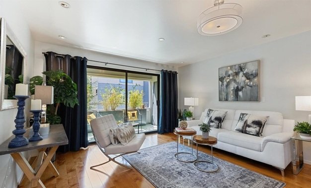 This 1 bed/1 bath end-unit has been completely renovated. Enter into the gracious foyer and feel the stress of the day melt away. New wood floors lead into the open-plan Kitchen/Dining/Living area. The Kitchen features bamboo cabinets, recycled glass countertops, glass backsplash and top-of-the line appliances. The ample Living Room has a private balcony with a peaceful view into the redwood trees of the interior courtyard. The generous bedroom has room for a king-size bed, new carpet, upgraded lighting, new closet doors and organizer system. The spa-like bath features plenty of storage, dual shower head over a soaking tub, under floor heat and a calming palette. One car deeded parking and extra storage complete the package.